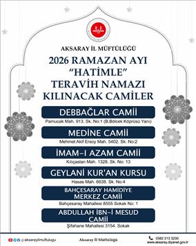 AKSARAY'DA 6 CAMİDE "HATİMLE TERAVİH NAMAZI" KILINACAK