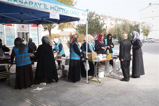 İl Müftülüğü bahçesinde düzenlenen ve TDV Aksaray Şubesi Kadın Kolları gönüllüleri tarafından yapılan çeşitli gıda ürünlerinin satışa sunulduğu hayır çarşısına ilgi yine yoğun oldu.