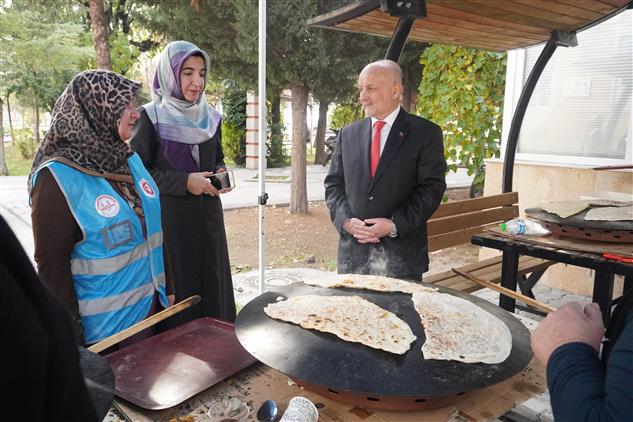İl Müftümüz Veysel Işıldar hayır çarşısını ziyaret ederek gönüllülerle hasbihal etti. İl Müftümüz; “Ameller niyete göredir, buradaki en ufak bir desteğin bile Allah katında büyük mükafatları olacağına inanıyoruz. Zalim zulmüne devam etse bile bize düşen şey hakkın yanında olmaktır.” Şeklinde konuştu.